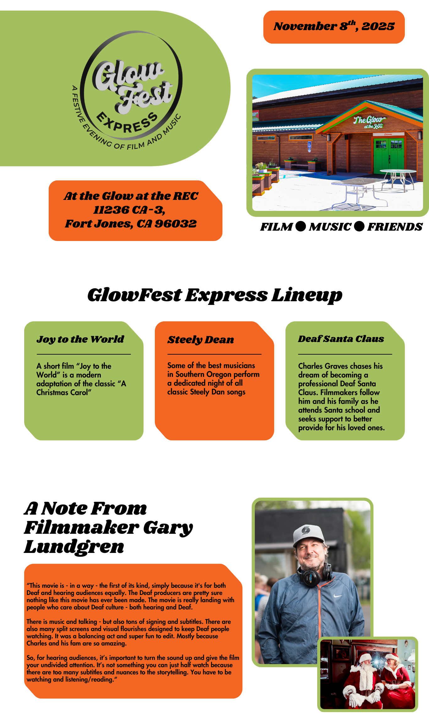 Larry Alexander, Founder and Executive Director of the Northern California Resource Center, also serves as GlowFest's Festival Director. Leading a dedicated team, Larry has successfully secured millions of dollars for vital initiatives within Siskiyou County. Additionally, he cofounded the Jefferson State FLIXX FEST. A Siskiyou County native, Larry has been dedicated to regional economic development, forest health, and fire prevention since 1993. He is also a founding member of the band Afterglow and was the executive producer of the award-winning documentary "Afterglow."